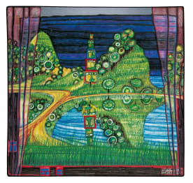 FRIEDENSREICH Hundertwasser, Born Vienna, Austria, 1928, Died Port of Brisbane, Australia, 2000. Antipode Island (756), 1975, Mixed media on hardboard, 48.0 x 50.0, Signed and dated, Reproduced by kind permission and © 2013 Hundertwasser Archive, Vienna / Namida AG, Glarus, Switzerland, Private collection, Vienna,