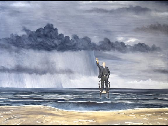 The mine manager’s dream, 122 x 90. With the water level rising in the mineshafts and returns falling for the first time in a decade, industrial conflict threatens to overwhelm the diggings and the embattled mine manager sleeps uneasily.