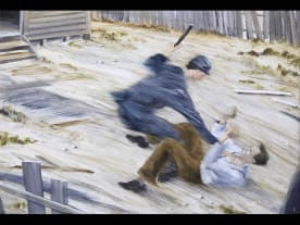 The Death of Fred Evans, 32 x 23. Evans then fled in terror through a back door and into a vacant property behind the hall. “My father always said that he survived,” says Don Boswell, “because he could run faster than Fred Evans.”