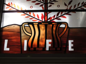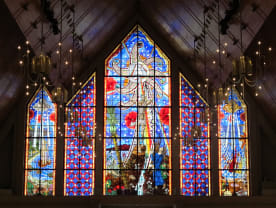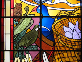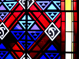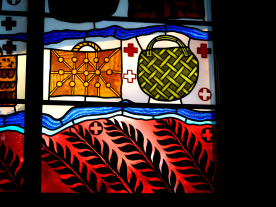 The Great Window, designed by Nigel Brown, is said to be the largest expanse of stained glass in the southern hemisphere. The windows have a Polynesian and a European side, with the risen Christ in the centre crowned by a flower depicting the seven days of Creation.
