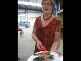 Jill Brandon works in an asparagus pack house during asparagus season and loves travelling around NZ and Australia doing seasonal work with her husband. They’re both retired now, which means she has more time for her art. And in an unprecedented conjunction of these two aspects of her life, she recently had an exhibition in the asparagus pack house. This was the brainchild of owner Geoff Lewis - who was so pleased with how the opening came off, he’s planning to make it a yearly event. Amelia Nurse visited the Foxton area pack house to soak up the creative atmosphere and talk to Jill about the exhibition. Asparagus sandwiches anyone?
