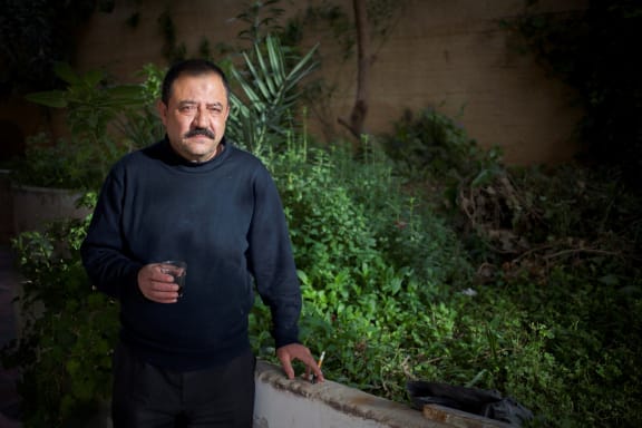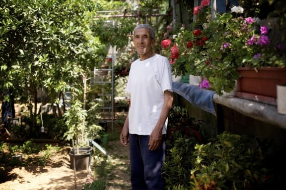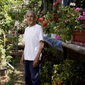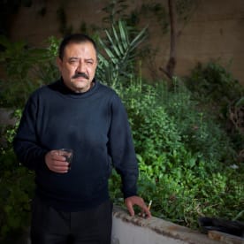 Mohammed Hammud in his garden in Qalindiya refugee camp, April 2016. His