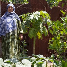 Huda with a lime in her garden in Gaza City, April 2013.