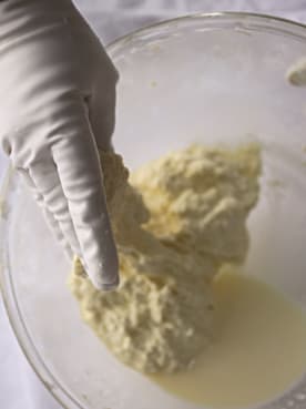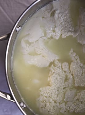 30 minute mozzarella curd forming. Photo credit: Little Cottage Farm