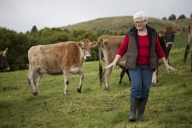 Jean on the farm at Waihi. Photo credit: Little Cottage Farm