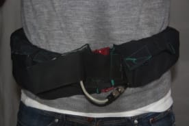 Wearing the FeelSpace belt, which buzzes at the north-facing part of the waist. In time it helped Caroline re-draw her mental map of her home town, aligned to magnetic north.