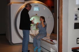 Having a structural and functional MRI scan to see the size and activity of relevant parts of Caroline's brain.