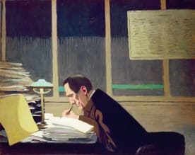 Félix Fénéon, almost certainly the only art dealer ever to have planted a terrorist bomb, at work in his office (painting by Félix Vallotton).
