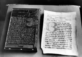 Johann Gutenberg perfected the combination of movable metal type, printing ink, and a wooden screw press to enable the production of a large number of identical copies of any given work.