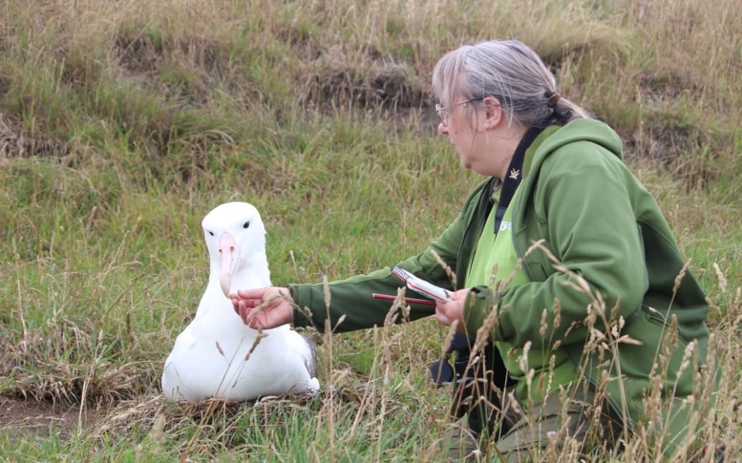 DOC ranger Sharyn Broni with an albatross. Photo: