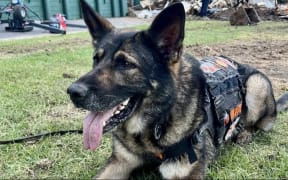 A four legged rescuer is being praised for her tireless work helping at the scene of the tragic Mt Maunganui landslide.